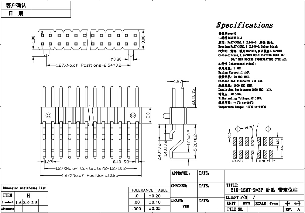 聯(lián)豐盈1.27mm臥貼排針規(guī)格書