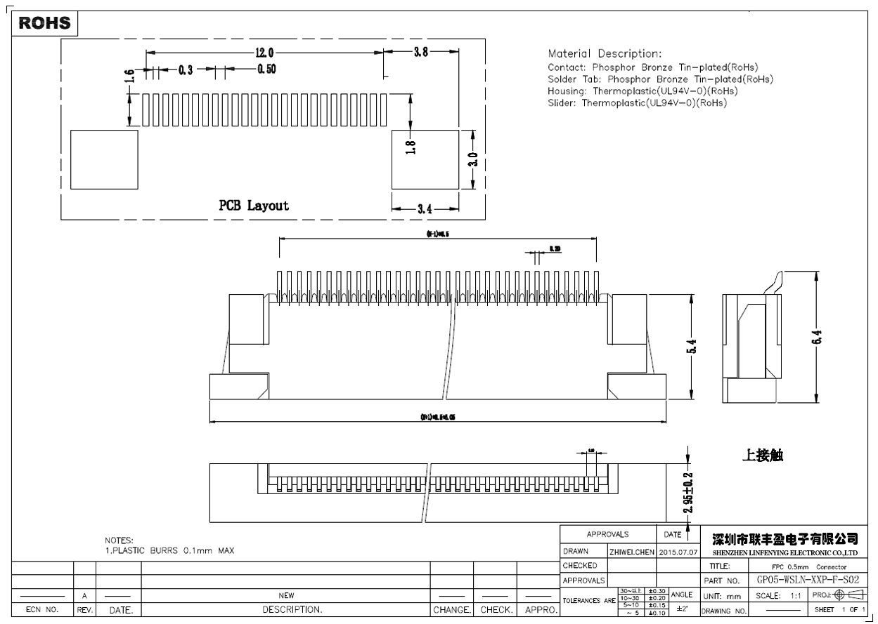 產(chǎn)品簡介品名:FPC連接器規(guī)格:臥式貼片/90°間距:0.5mm/拉拔上接觸PIN數(shù):4P-60P高度:2.95mm