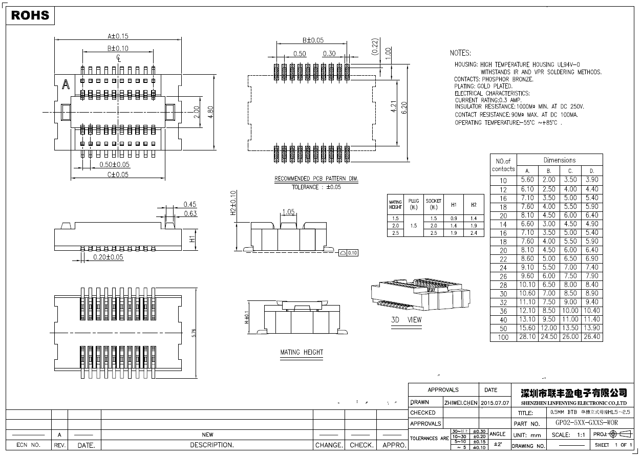 品名:0.5mm單槽板對(duì)板連接器母座