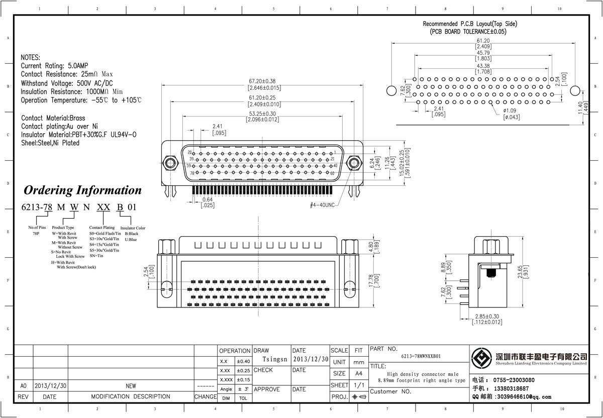 技術(shù)參數(shù):額定電流:3.0amp電流電阻:20mΩ最大絕緣電阻:1000mΩMIN承受電壓:AC 500V /分鐘工作溫度:55oC + 105oC接觸材料:黃銅、磷青銅觸點(diǎn)電鍍金或錫鎳絕緣體材質(zhì):聚酯(UL94V-0)標(biāo)準(zhǔn):PBT的+ 30%廣發(fā)殼:冷軋輥鋼,鍍鎳黃銅螺母:錫鎳板,