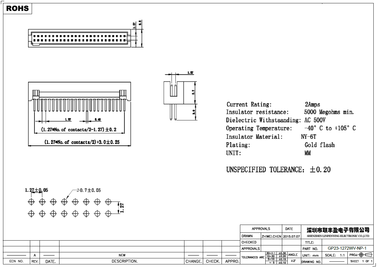 產(chǎn)品簡介品名:簡牛規(guī)格:插件/立式180°間距:1.27mmPIN數(shù):10-100PIN備注:簡牛連接器系列