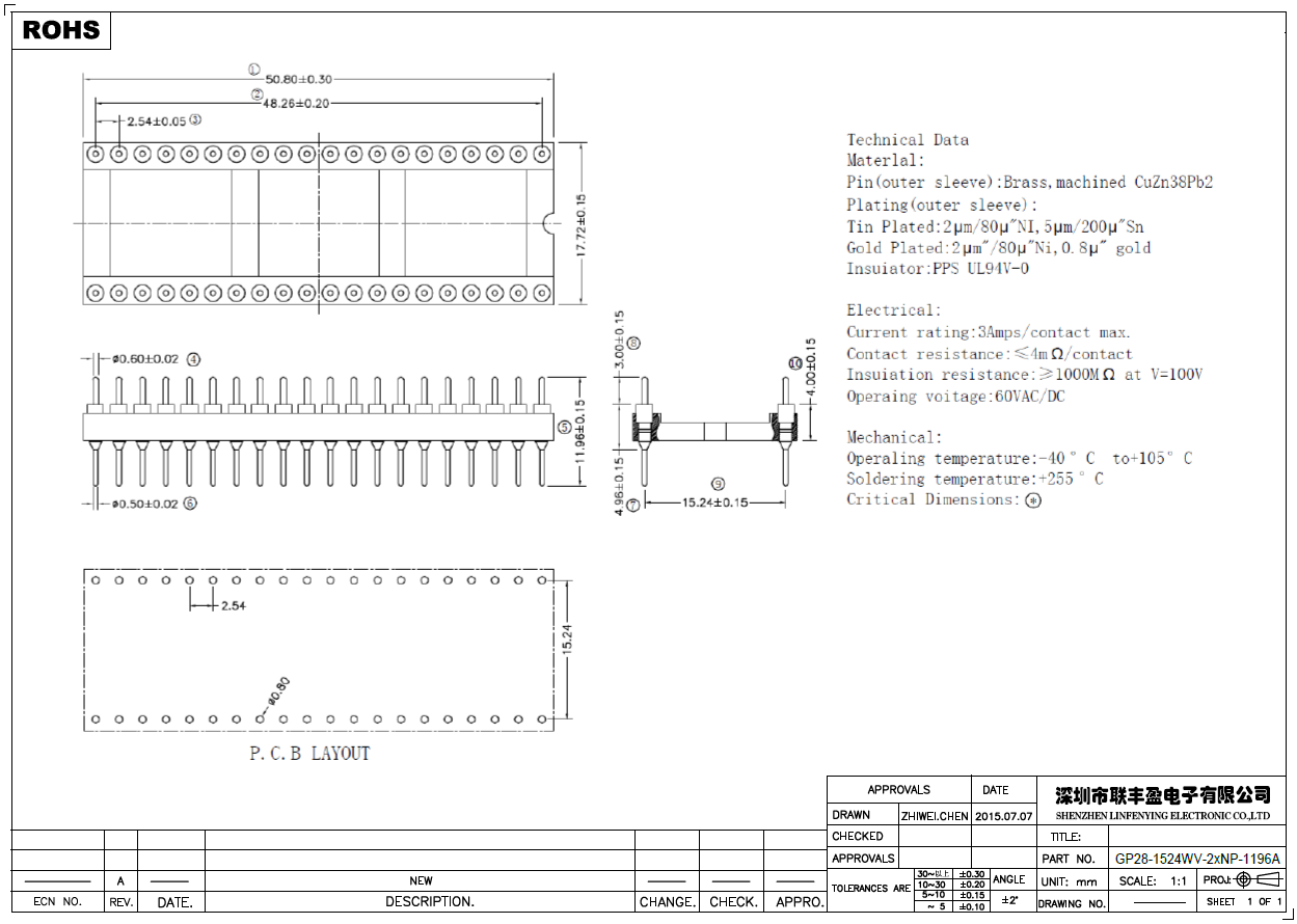 產(chǎn)品簡介品名:排針規(guī)格:插件/直式180°間距:2.54mmPIN數(shù):24-52PIN備注:IC圓孔系列
