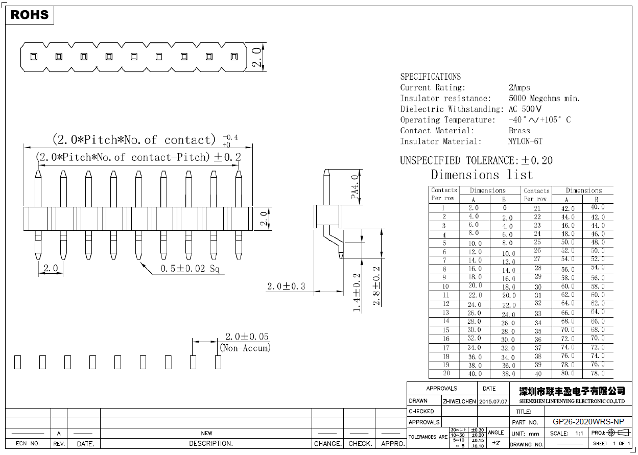 產(chǎn)品簡介品名:排針規(guī)格:貼片/臥式間距:2.00mmPIN數(shù):1-40PIN備注:排針系列