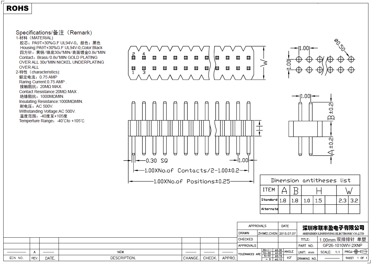 產(chǎn)品簡(jiǎn)介品名:排針規(guī)格:插件/直式180°間距:1.00mmPIN數(shù):2-40PIN備注:排針系列