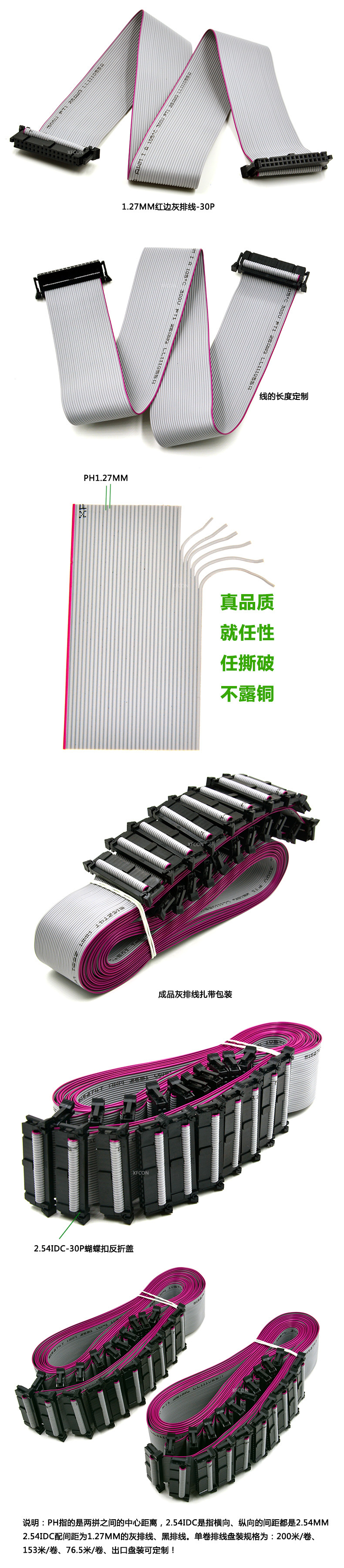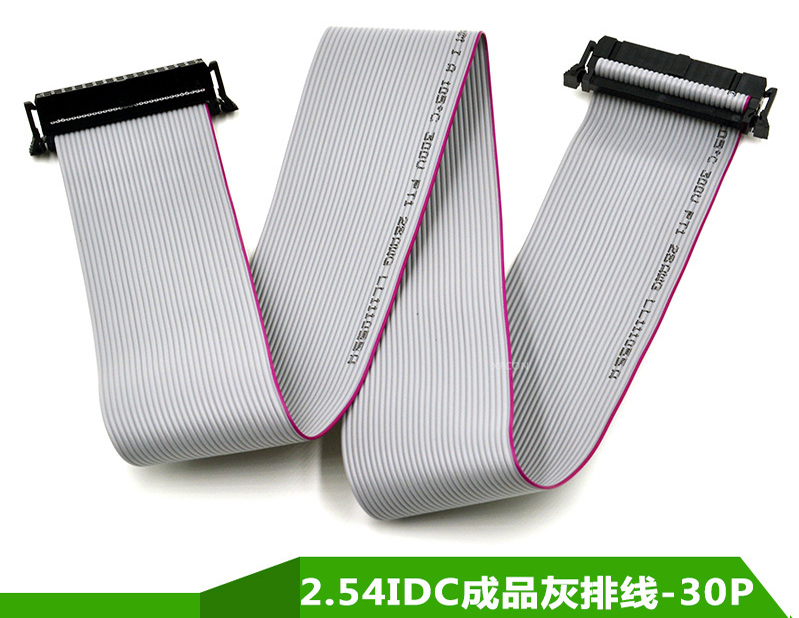 30P蝴蝶扣排線 2.54IDC成品紅邊灰色排線 2.54排線