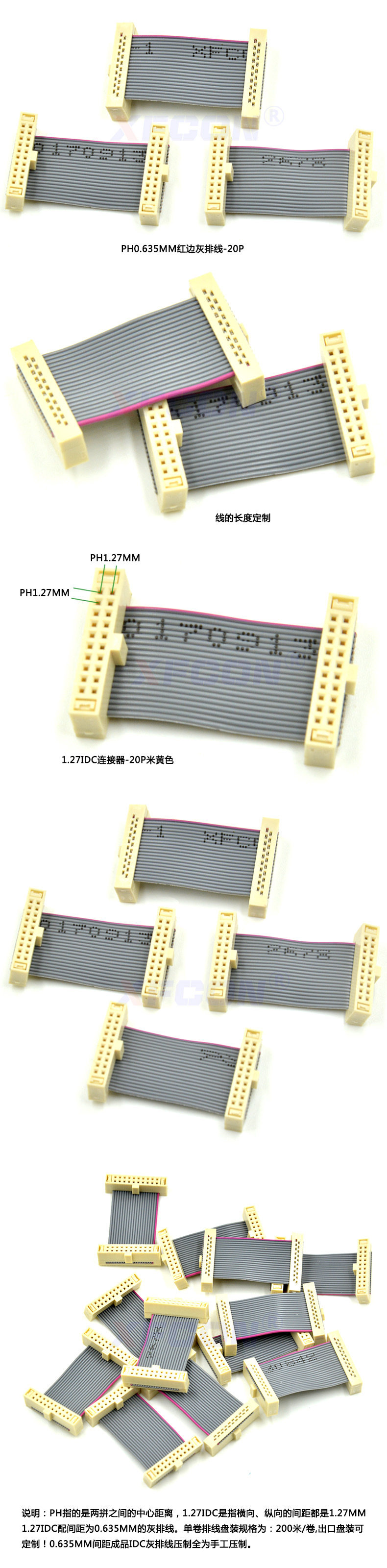 灰排線間距:0.635MM  (另有1.0MM 1.27MM  2.0MM 2.54MM)