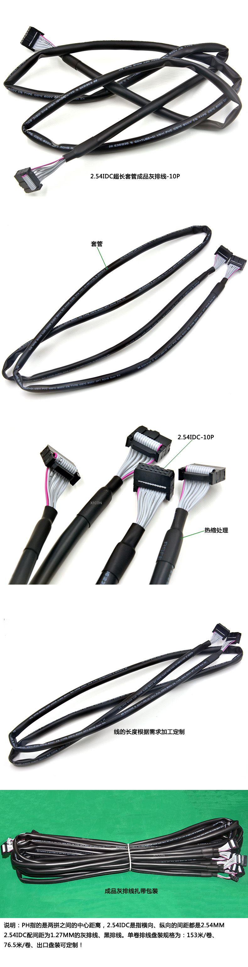 產(chǎn)品名稱:2.54IDC超長(zhǎng)套管成品灰排線-10P
