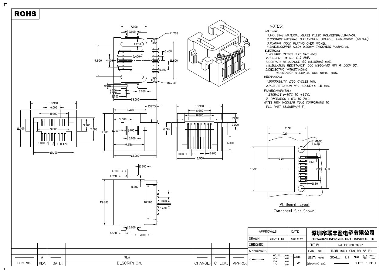 RJ45/RJ11 網(wǎng)絡(luò)連接器系列產(chǎn)品技術(shù)參數(shù)