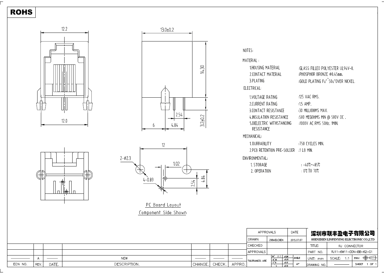 RJ45/RJ11 網(wǎng)絡(luò)連接器系列產(chǎn)品技術(shù)參數(shù)