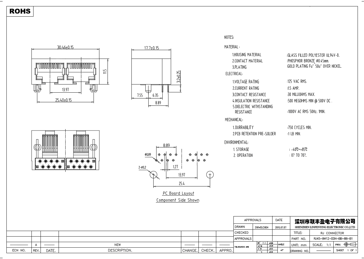 RJ45/RJ11 網(wǎng)絡(luò)連接器系列產(chǎn)品技術(shù)參數(shù)