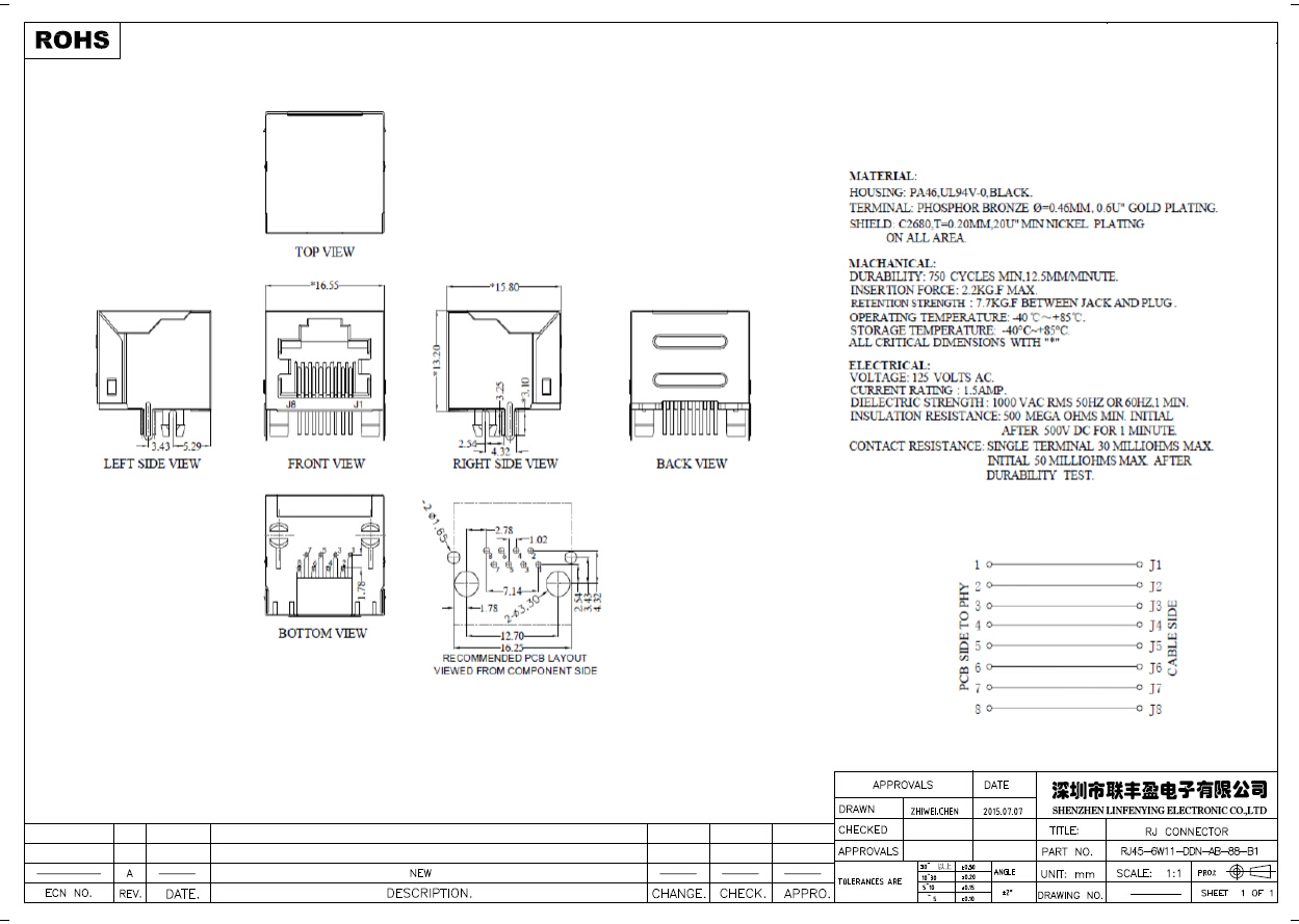 RJ45/RJ11 網(wǎng)絡連接器系列產(chǎn)品技術參數(shù)