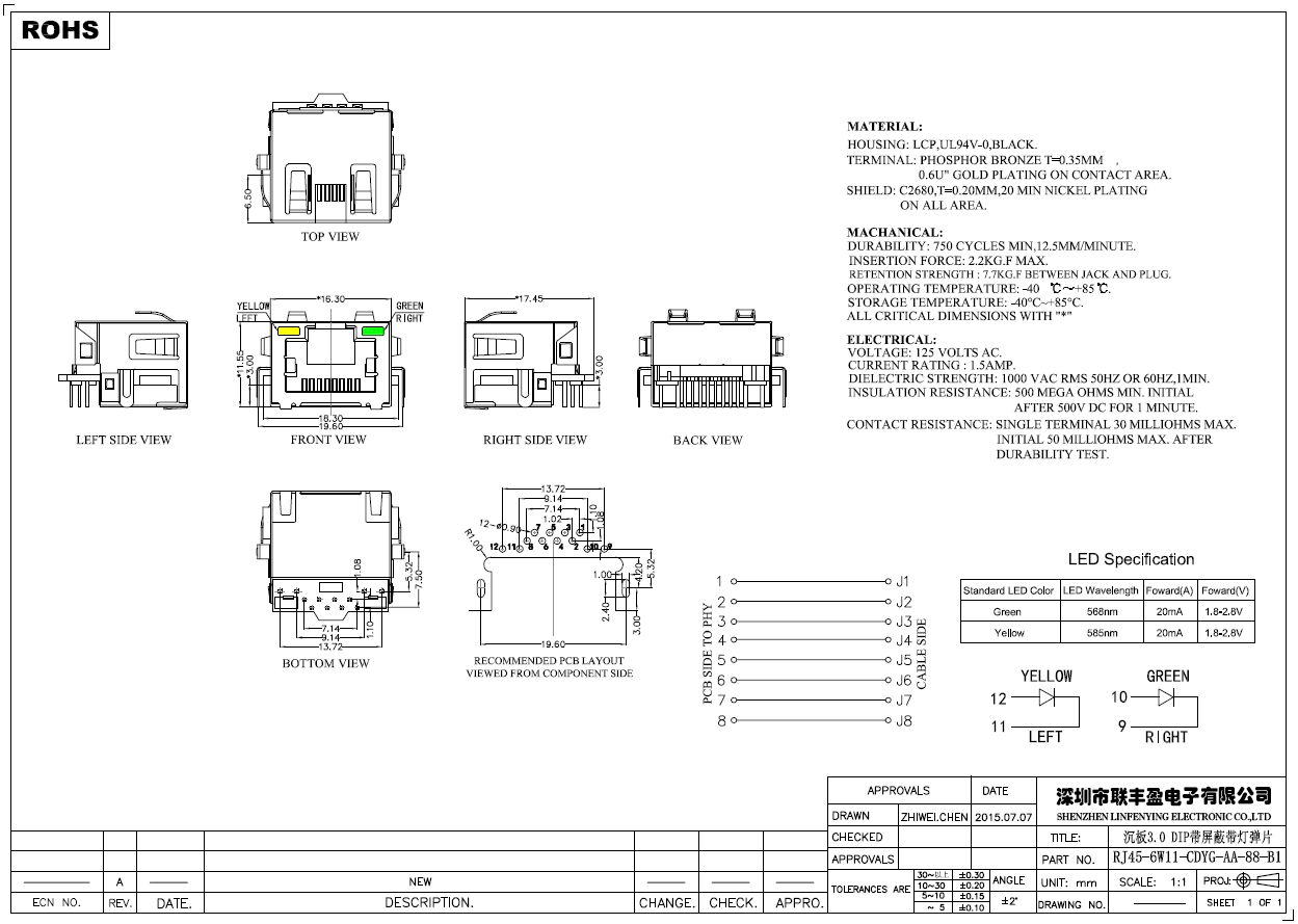 RJ45/RJ11 網(wǎng)絡(luò)連接器系列產(chǎn)品技術(shù)參數(shù)