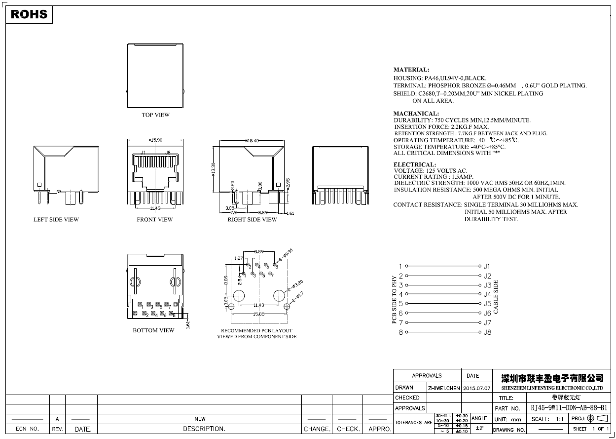 RJ45/RJ11 網(wǎng)絡(luò)連接器系列產(chǎn)品技術(shù)參數(shù)