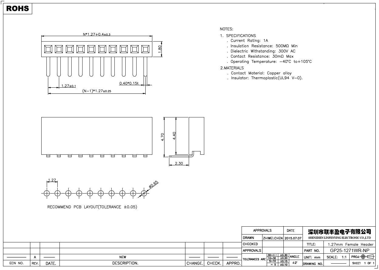 產(chǎn)品簡介品名:排母規(guī)格:插件/90°間距:1.27mmPIN數(shù):2-50PIN備注:排母系列