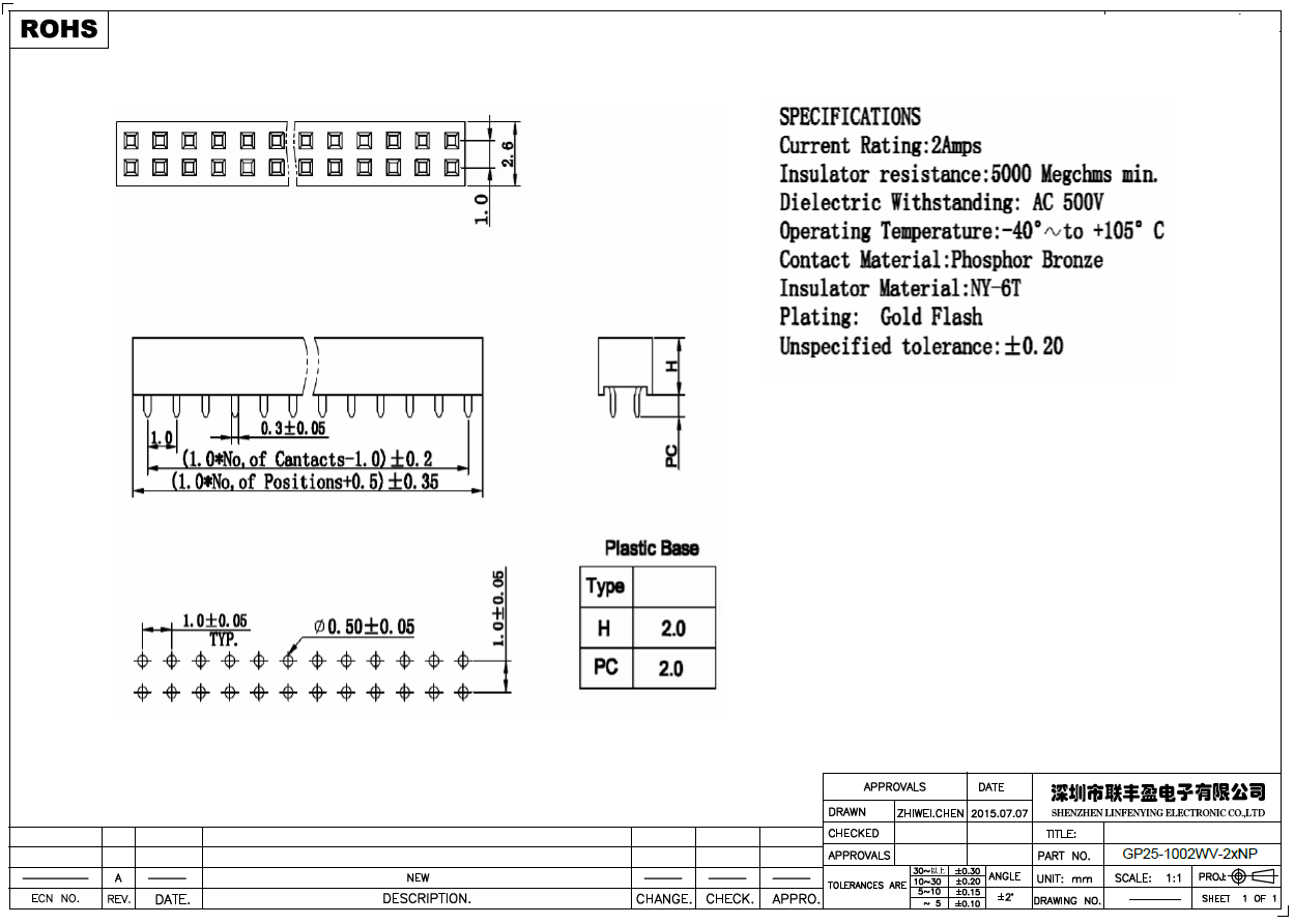 產(chǎn)品簡介品名:排母規(guī)格:插件/直式180°間距:1.00mmPIN數(shù):2-40PIN備注:排母系列