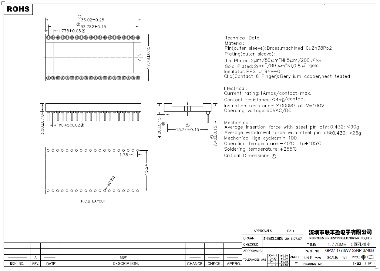 產(chǎn)品簡介品名:排母規(guī)格:插件/立式180°間距:1.778mmPIN數(shù):24-52PIN備注:IC圓孔系列