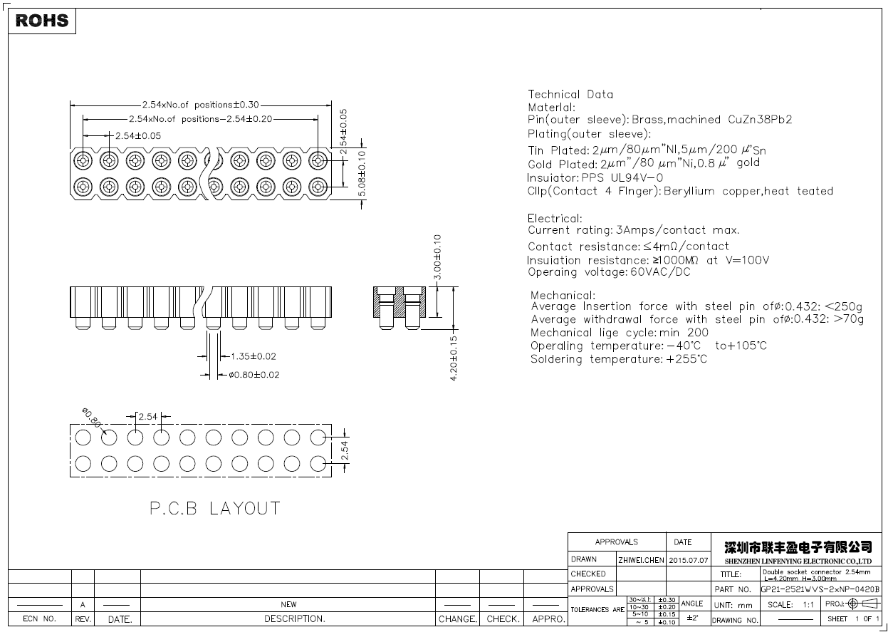 產(chǎn)品簡介品名:排母規(guī)格:貼片/立式180°間距:2.54mmPIN數(shù):2-40PIN備注:圓孔排母系列