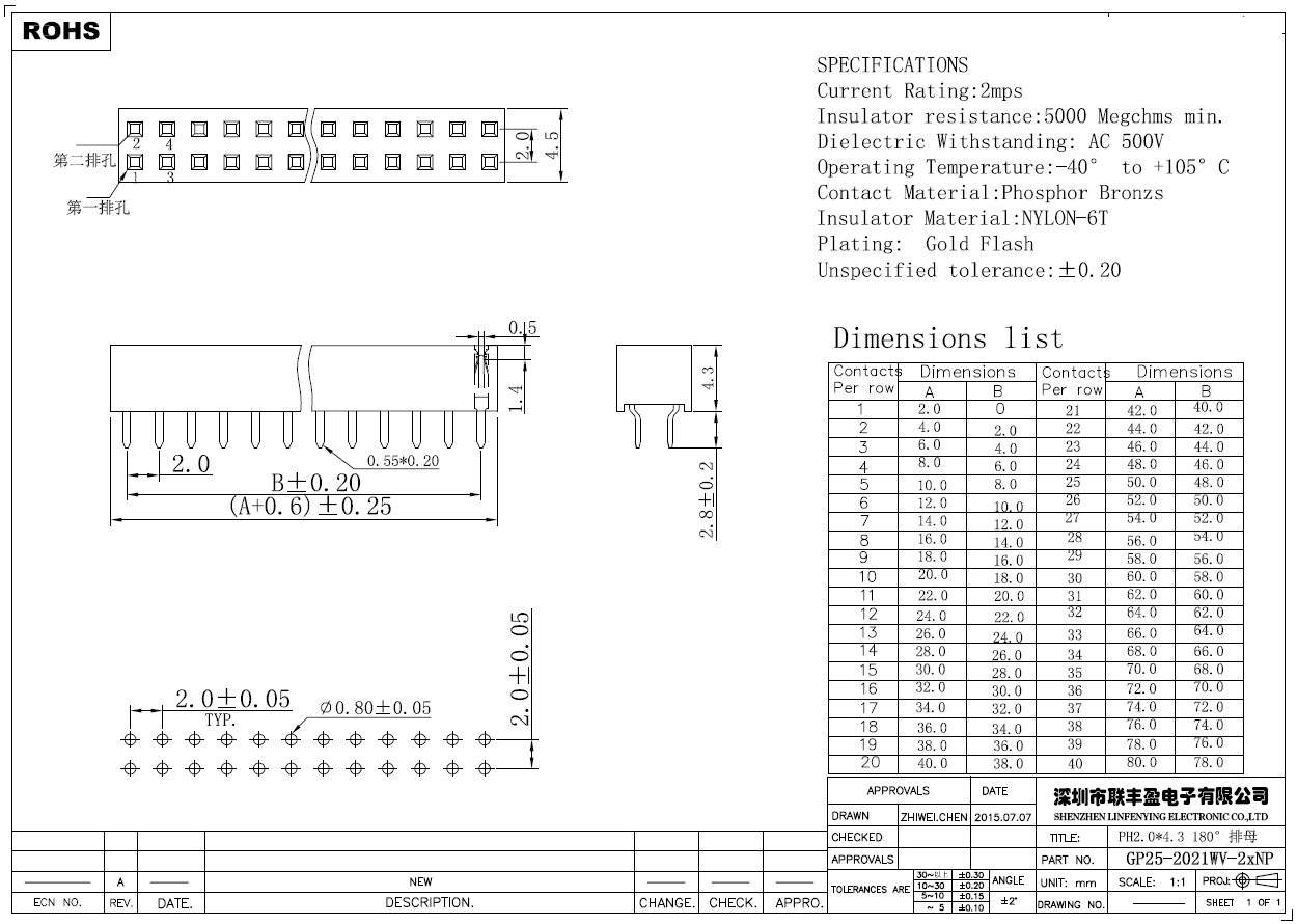 產(chǎn)品簡介品名:排母規(guī)格:插件/直式180°間距:2.00mmPIN數(shù):2-40PIN備注:排母系列