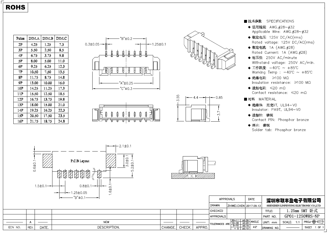 產(chǎn)品簡介品名:線對板連接器規(guī)格:臥式/SMT90°間距:3.00mmPIN數(shù):2-24PIN